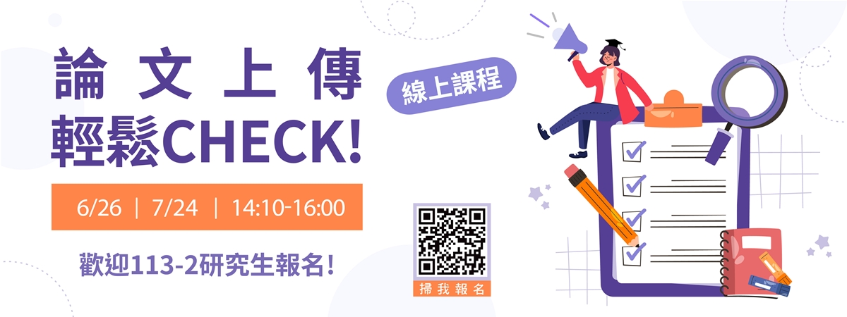 圖書館開設論文上傳教學課程,歡迎應屆畢業研究生踴躍報名!